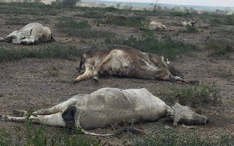Hace 20 años que no se enfrentaba una sequía como esta, la cual lleva 3 meses, lo que ha provocado la mortandad de mucho ganado, en Tamuín únicamente son 1800 socios 1800 y cada socio ya perdió varios animales, hay quienes se les han muerto 10 y hasta 12 en total son mas de 4 mil cabezas muertas, lo que no ponen en conocimiento, porque en ocasiones no nos damos cuenta sino hasta después de 3 días cuando vemos la zopilotera.