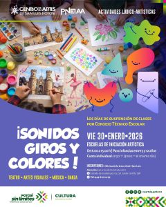 El Centro de las Artes de San Luis Potosí invita a niñas y niños a participar en la actividad lúdica “¡Sonidos, giros y colores!”.