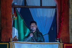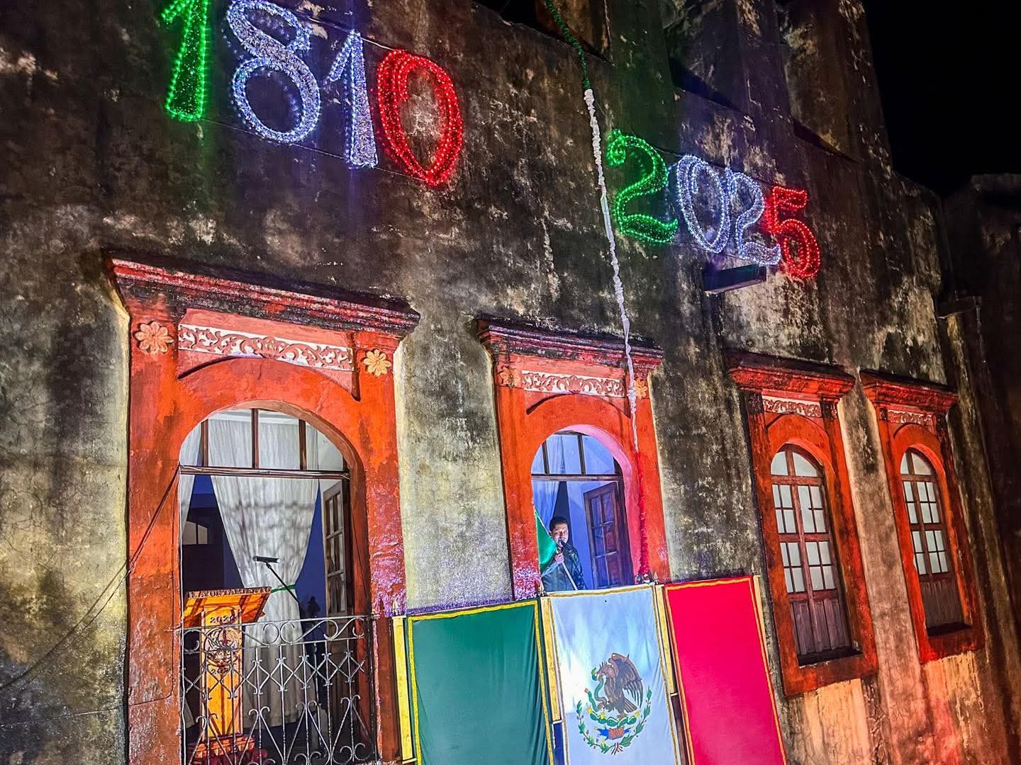 Desde el balcón del Ex convento de San Agustín, Márquez evocó a los héroes que dieron patria y libertad, pronunciando con energía las tradicionales arengas que fueron acompañadas por el repique de campanas y el fervor del pueblo reunido en la plaza principal.