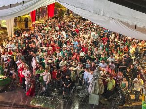 El evento contó con un programa cultural y musical que enmarcó la celebración, donde familias completas se dieron cita para disfrutar de una noche llena de identidad y patriotismo.