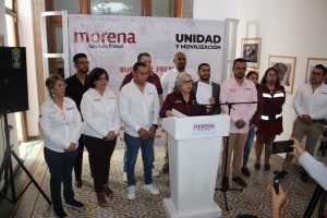 Rita Ozalia Rodríguez Velázquez, Presidenta del Comité Ejecutivo Estatal del Movimiento de Regeneración Nacional en San Luis Potosí, acompañada de diputados locales y federales del partido, además de representantes de la organización, anunció un Acuerdo de Unidad que permita consolidar la Cuarta Transformación y el Movimiento en el Estado.