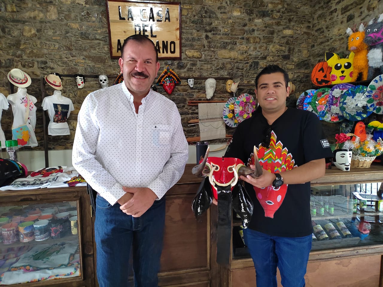 En el marco de la fiesta más grande de la huasteca, el Xantolo, el Edil sanmartinense recibió la visita del director del Museo Nacional de la Máscara Emilio Eduardo Briones con quien realizó un recorrido por la casa del artesano, donde pudieron ser testigos de la habilidad de los artesanos del municipio y la calidad de las diferentes artesanías que se elaboran en San Martín.