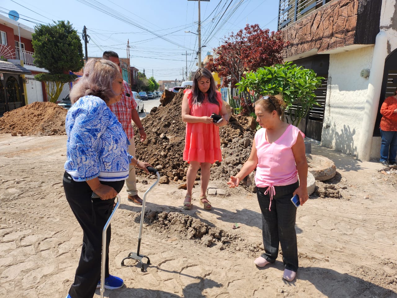 La presidenta municipal acudió este sábado a la calle San Martín, a conocer de primera mano los trabajos de pavimentación con concreto hidráulico, que incluyen servicios de red hidráulico y red de drenaje, para constatar que se desarrollen conforme a los tiempos establecidos desde su arranque.