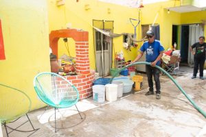 En estos domicilios, externó el trabajo que lleva a cabo el Ayuntamiento para fortalecer la salud y el bienestar de todas y todos, ante una crisis de falta de agua que continúa en al menos 30 colonias y zonas del municipio, por lo que reafirmó que esta acción seguirá adelante como desde el inicio de su administración.