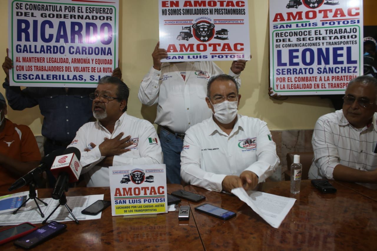 Líderes de la organización Alianza Mexicana de Organización de Transportistas A.C. “Amotac” reconocieron el trabajo del Secretario de Comunicaciones y Transportes, Leonel Serrato Sánchez y del gobernador Ricardo Gallardo Cardona, para regularizar el transporte público en San Luis Potosí.