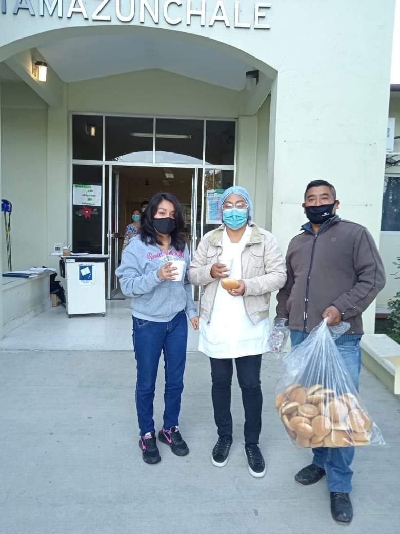 Tamazunchale, S.L.P.-Antorchistas de la comunidad de Papatlaco, perteneciente al municipio de Tamazunchale junto con el activista Fernando Morales, se unieron para brindar apoyo a la gente y servidores del Hospital, ubicado en dicho municipio, “entregaron un vaso de atole y un pan, ya que muchas familias nos encontramos en espera para ser atendidas, es una gran acción por parte de estas personas, entregando un pequeño refrigerio en estos momentos tan difíciles, agradecemos su noble labor”, comentó una de las pacientes que esperaba su turno.