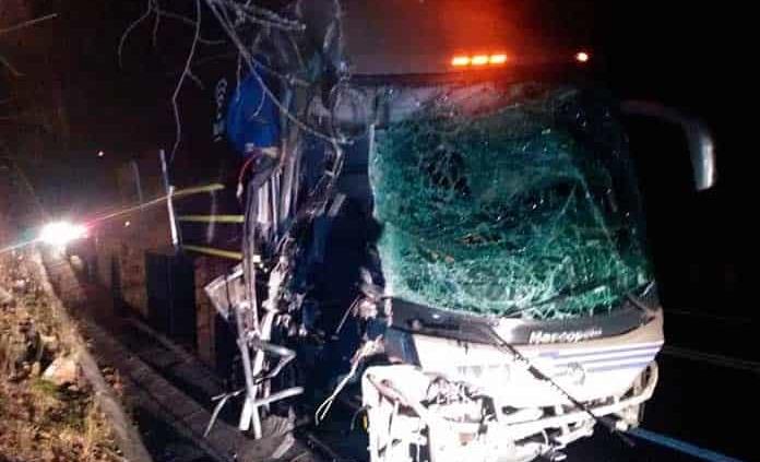 Fue poco después de las 22:00 horas de este martes, cuando en el kilómetro 44+500 de la carretera de cuota, se suscitó un choque entre un autobús de la línea Autonaves y un tráiler acoplado a un remolque en el que traía un contenedor cargado con ácido clorhídrico.