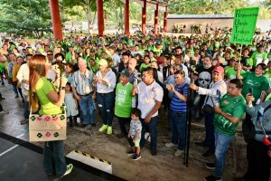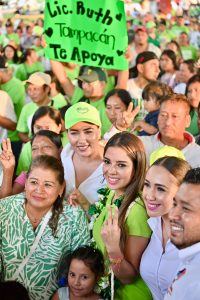 Ruth González fue recibida con coronas de flores, porras y augurios de triunfo, a los que la candidata respondió con el compromiso de representar a las y los potosinos en el Senado y legislar para que el Estado reciba recursos suficientes para apoyar totalmente a las familias de la Huasteca potosina, históricamente las más castigadas por el abandono de la herencia maldita.