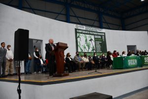 En su mensaje, el director general del SEER refirió a las y los estudiantes presentes ser el “gran futuro de México”, y añadió: “ustedes son movidos por el espíritu competitivo, por los valores del esfuerzo, superación, perseverancia, igualdad, respeto, solidaridad y compañerismo”. Aseguró que el deporte tiene una enorme capacidad de transformación y es sinónimo de una vida sana, alejada de los vicios y de las adicciones.