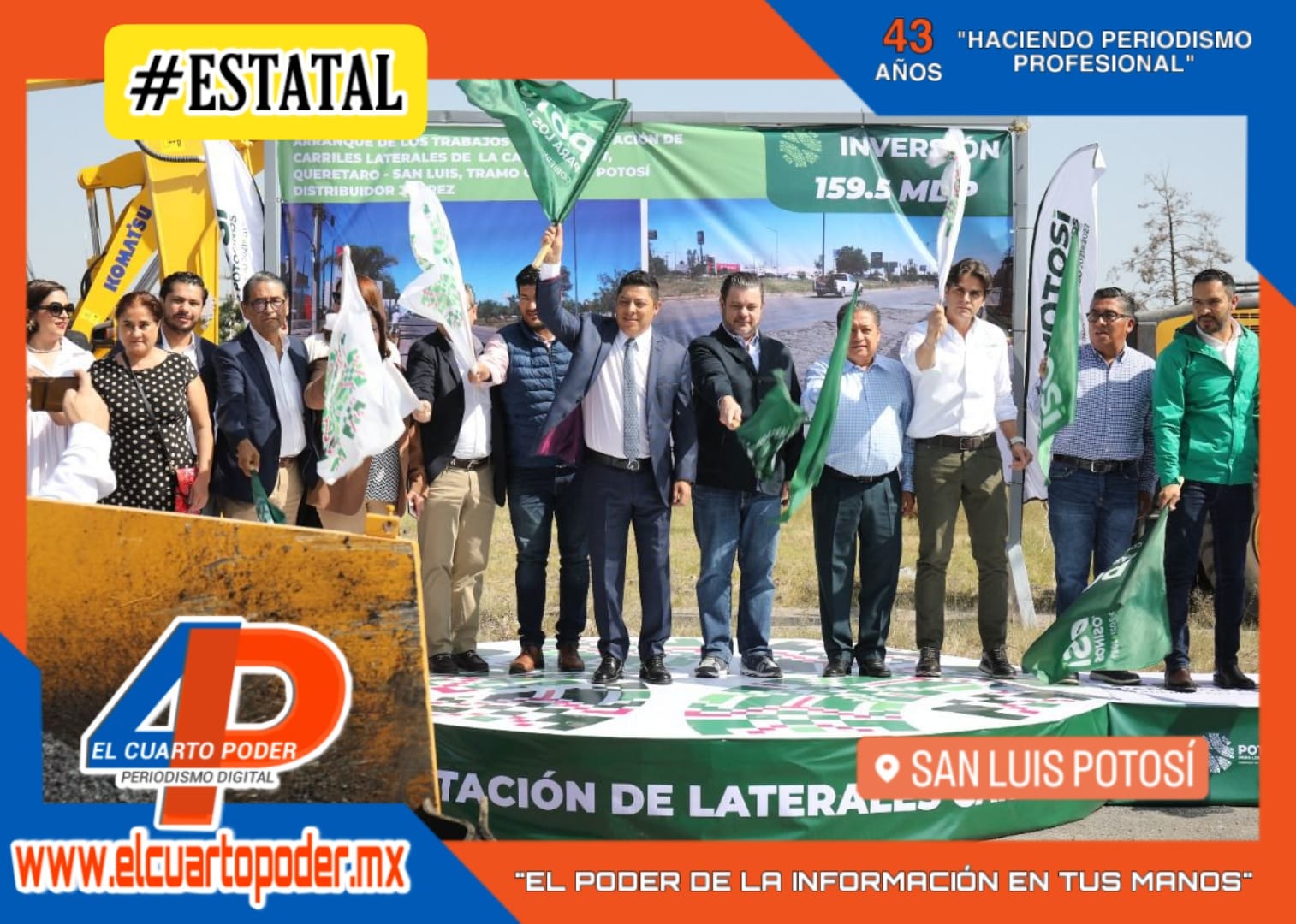 Al reafirmar el proceso de transformación de todo San Luis Potosí que inició el Gobierno del cambio, el Jefe del Ejecutivo Estatal Ricardo Gallardo Cardona, arrancó los trabajos de rehabilitación de las laterales de la carretera 57 a Querétaro, tramo Anillo Periférico Oriente – Distribuidor Vial Benito Juárez, con una inversión de 159.5 millones de pesos, que cambiará el rostro hacia la zona industrial, en beneficio para 250 mil usuarias y usuarios.