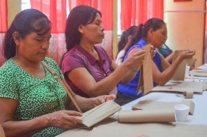 Durante el taller, las participantes aprendieron a crear envolturas artesanales personalizadas que permitirán etiquetar cada pieza con el nombre de quien la elabora, fortaleciendo así la identidad de sus productos y dándoles un mayor valor agregado.