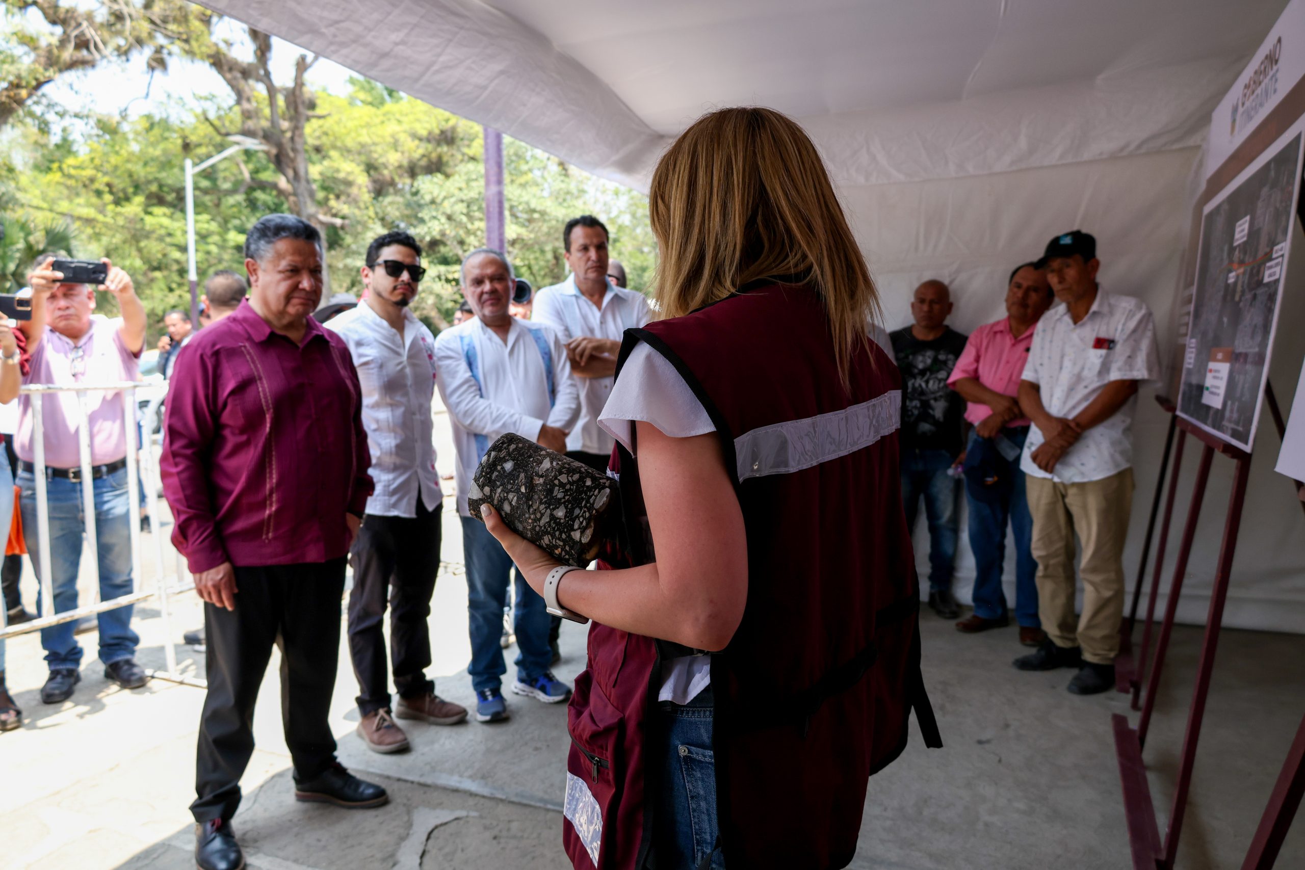 Durante la supervisión de la construcción de la carpeta asfáltica del tramo de la carretera estatal Chalahuiyapa-Los Otates, se informó que fue necesario reconstruir la capa de subbase, para después llevar a cabo el riego de impregnación, el fresado y la posterior pavimentación, por lo que una vez concluida será evaluada por las instancias correspondientes.
