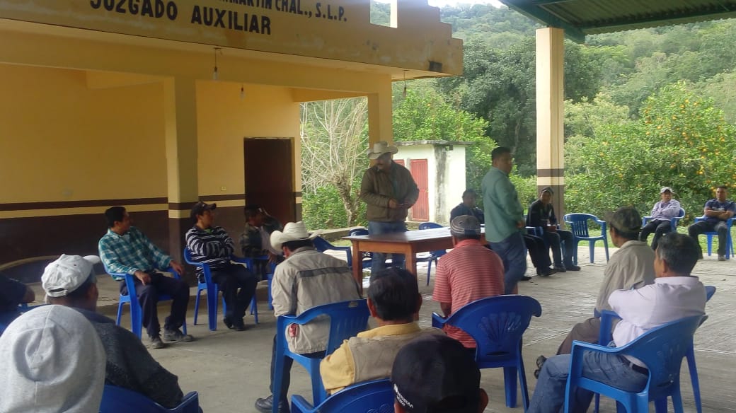 San Martín Chalchicuautla, S.L.P-. En una asamblea general realizada en la localidad de San Luisito, el Alcalde Crescencio Rivera Guerrero acompañado del Cordinador de Desarrollo Social Jorge Hernández Hernández sostuvieron un diálogo con los comuneros para dar seguimiento a las obras y acciones para el abastecimiento de agua.