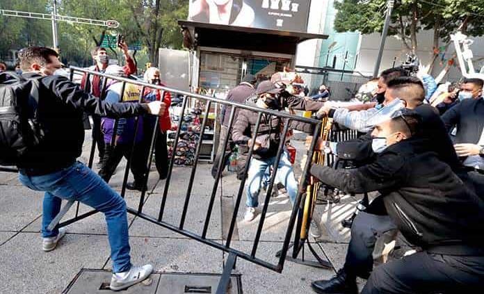Los manifestantes llegaron a las inmediaciones de las calles Madrid y París, con el propósito de ingresar a la Cámara, pero se toparon con que personal de resguardo había colocado vallas metálicas en los accesos a las calles Madrid y París para impedirles el paso. Los manifestantes exigieron el paso y, cuando se les negó, procedieron a retirar las vallas; fue en ese momento cuando se dieron los empujones con los trabajadores del Senado.