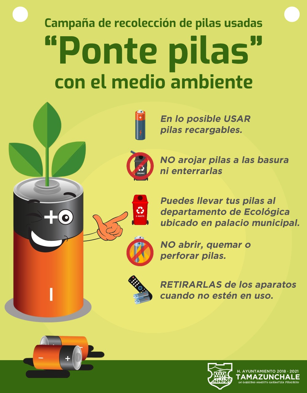 El Ayuntamiento municipal de Tamazunchale que preside Toño Costa, a través del área de Ecología, lanza una campaña de “recolección de pilas usadas”, con el objetivo de darles un destino final adecuado y generar conciencia sobre el peligro para la salud humana y el medio ambiente tirarlas en el suelo, agua o quemarlas.