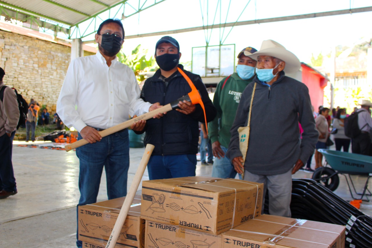 Fue este 15 de diciembre del presente año, en la localidad de Santiago Centro, donde directamente el alcalde Toño Costa, hizo entrega de estos paquetes de herramientas que constan de pala, barreta, carretilla, machete, talacho, guingaro y sembrador.