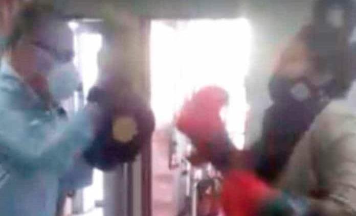Mediante la red social WhatsApp, empleados sindicalizados dieron a conocer una videograbación donde se aprecia a mujer con guantes de boxeo, quien lanza golpes a un compañero que funge como sparring.