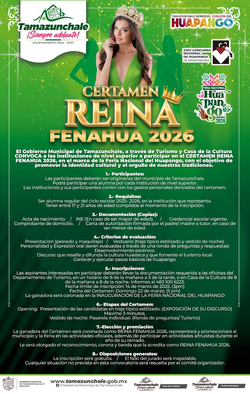 El Gobierno Municipal de Tamazunchale, a través de Turismo y Casa de la Cultura, invita a todas las instituciones de superior a formar parte de esta gran tradición en el marco de la Feria Nacional del Huapango.