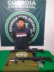 Tamuín, SLP.- Como resultado de los trabajos de seguridad y vigilancia implementados en el dispositivo “Huasteca Segura”, efectivos de la Guardia Civil Estatal (GCE) detuvieron a tres presuntos criminales integrantes de una célula delincuencial, a quienes además les aseguraron armas de grueso calibre de uso exclusivo de las fuerzas del orden público.