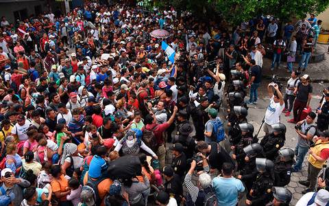 Tapachula, Chiapas.- A pesar de que unos 200 agentes antimotines de la Guardia Nacional y del Instituto Nacional de Migración (INM) intentaron frenar la caravana de migrantes que partió la mañana del sábado de Tapachula, los efectivos fueron superados en número, aunque en el choque un menor fue herido.
