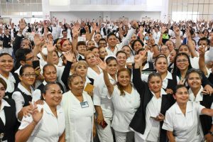 Explicó que, en particular, alrededor de mil trabajadores y trabajadoras del Hospital Central “Dr. Ignacio Morones Prieto” que han estado laborando con contratos eventuales serán beneficiados, con el propósito de brindarles certidumbre laboral, enaltecer su profesionalismo y ofrecerles tranquilidad al tener un empleo seguro y digno para ellos y sus familias.