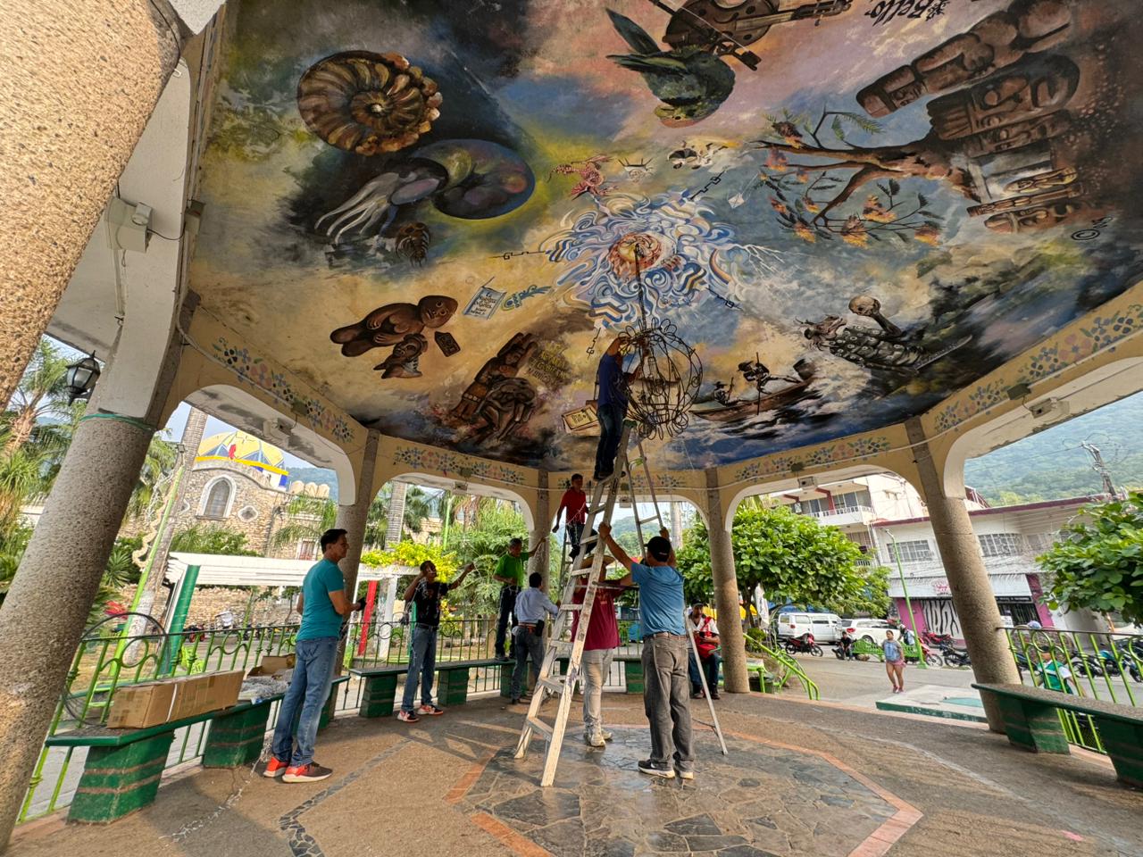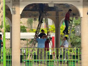 Tamazunchale, S.L.P. — El Departamento de Recursos Materiales ha comenzado con la instalación de la decoración navideña en el Jardín Municipal, con el propósito de crear un ambiente cálido, familiar y lleno de espíritu festivo para todas las familias tamazunchalenses.