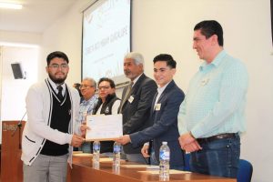El director general del Colegio de Bachilleres, Ricardo Daniel Centeno Trejo, acudió a la ceremonia de entrega de reconocimientos en las instalaciones del auditorio de la Universidad Autónoma de San Luis Potosí, donde agradeció la participación de las y los alumnos y el respaldo de la estrategia educativa del Gobernador Ricardo Gallardo Cardona, que permitió que dos de los cuatro ganadores de la olimpiada estatal pertenezcan al Cobach.