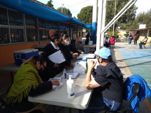 Dijo que en esta etapa de vacunación se encuentran participando los funcionarios del Gobierno federal Jorge Armando Chávez Enríquez, director de Gestión Ciudadana, y Mauricio Reyes Vargas, director de Concertación Social de la Secretaría de Educación Pública (SEP), quienes junto al titular de Enlace Educativa de la SEP, Francisco Lomelí Isaza y la delegada en San Luis Potosí del Instituto Mexicano del Seguro Social (IMSS), María Guadalupe del Rosario Garrido Rojano, realizaron un recorrido de supervisión en los módulos de la zona Metropolitana.