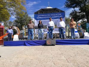 El titular de la Sedarh José Alfredo Pérez Ortiz, a nombre del Mandatario Estatal Ricardo Gallardo, entregó 234 paquetes de herramientas agrícolas, que benefician a decenas de familias con una inversión por más de un millón de pesos y que darán un fuerte impulso a la producción agrícola de la zona, como parte del rescate del campo que se emprendió desde el inicio del Gobierno del cambio.