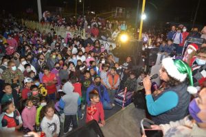Durante las visitas a las diferentes colonias, se realizó un programa recreativo y musical en donde fue notoria la presencia de Santa y sus renos así como payasos, villancicos y sonrisas. .