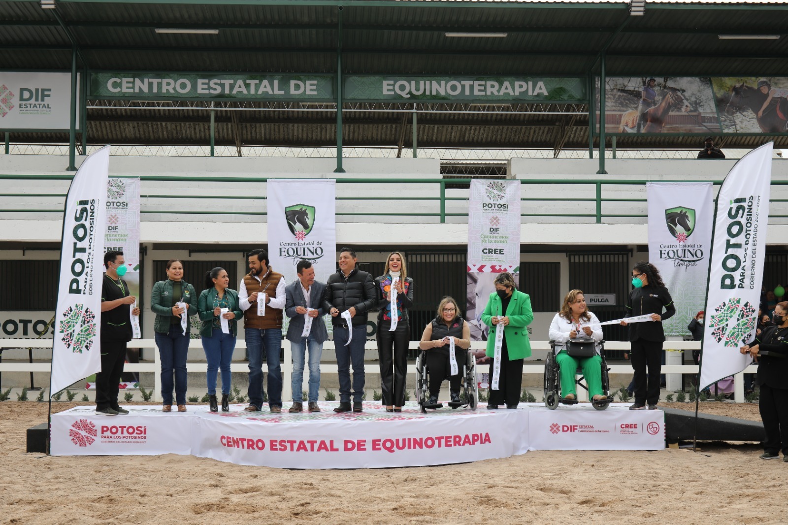 El Gobierno del cambio, sensible y con alto sentido social, que busca dignificar la vida de las y los niños y adultos mayores con discapacidad, hizo realidad un sueño más, luego de que este viernes el Gobernador de San Luis Potosí, Ricardo Gallardo Cardona y la presidenta honoraria del Sistema Estatal para el Desarrollo Integral de la Familia (DIF), Ruth González Silva, entregaron a las y los potosinos el nuevo Centro Estatal de Equinoterapia, que mediante un equipo multidisciplinario, brindará terapias con cuatro caballos donados por el equipo de charrería RG2.