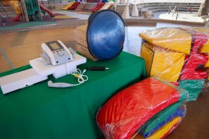 Agregó que entre el material entregado se encuentran: caminadora eléctrica multivelocidades, caminadora eléctrica de rehabilitación, colchonetas, entrenador de balance, láser terapéutico, plantoscopio, set de estimulación temprana, tina de hidromasaje, escalera de rampa y acondicionamiento, bicicletas especiales y barras paralelas, entre otros insumos de rehabilitación.