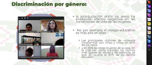 Con el propósito de que las y los servidores públicos cuenten con las herramientas necesarias para incorporar la perspectiva de género en el diseño y desarrollo de planes, programas y proyectos en la administración pública, como lo ha definido el Gobierno del cambio que encabeza Ricardo Gallardo Cardona, la Oficialía Mayor del Ejecutivo realizó el taller virtual “Perspectiva de género, violencia y discriminación”, a personal del Sistema Estatal para el Desarrollo Integral de la Familia (DIF).