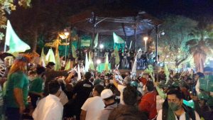 “Estamos hartos de la inseguridad, de la pobreza, la desigualdad y los privilegios para unos pocos. A partir del momento en que las y los potosinos asumamos a gubernatura dejaremos de vivir sin miedo, ¡lo vamos a lograr!”, dijo finalmente el “Pollo” Gallardo, dibujando la “V” de victoria en su mano, ante el oleaje de las banderas verdes y rojas que cobijaron al candidato de “Juntos Haremos Historia” en su primer acto de campaña.
