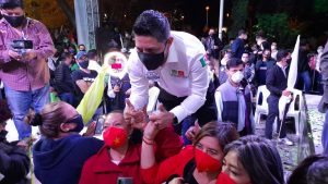 Acompañado de hombres y mujeres, jóvenes, académicos, comerciantes y profesionistas, el candidato del Partido Verde Ecologista de México (PVEM) y del Partido del Trabajo (PT), ofreció la reconstrucción de la paz y la seguridad en San Luis Potosí, reforzar el sistema de salud, vilipendiado por la actual administración estatal y eliminar abusivos impuestos estatales como derechos vehiculares y licencias de conducir.