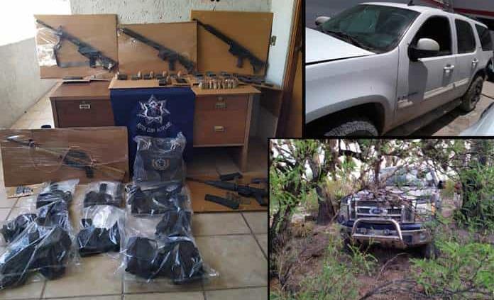 Así mismo, se llevó a cabo el aseguramiento de un vehículo marca Ford, tipo F150, de procedencia extranjera y una camioneta marca Chevrolet, tipo Yukon, con reporte de robo con violencia en el estado de Guanajuato.