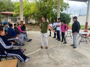 • En la escuela telesecundaria, Emiliano Zapata de la localidad de Tanchachín en Aquismón, el Instituto Potosino de la Juventud (Inpojuve), finalizó los recorridos del programa con pláticas y talleres en apoyo a las y los jóvenes.a
