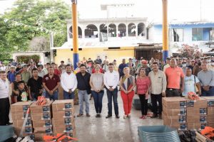Hasta la localidad se trasladó el Alcalde José Luis Meza, acompañado de su esposa Charito Zúñiga, regidores, síndico, funcionarios y consejeros, para entregar las herramientas a 29 localidades de la zona de Mecatlán y sobre todo, al realizar el evento en dicho lugar, facilitarles el traslado de su material.