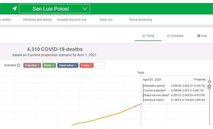 PRONOSTICA IHME 5,246 MUERTES EN SLP SI VACUNA TARDA Y NO SE ACATAN MEDIDAS SANITARIAS