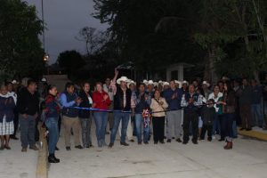 Acompañado por su esposa Cira Nely Hervert Camargo Presidenta del DIF Municipal, el Secretario General Lic. José de Jesús Quezada Rivera, Cuerpo de Regidores, Autoridades Comunales y vecinos del Huayal hicieron el corte simbólico del listón.