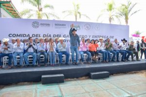 Destacó el acercamiento que Ricardo Gallardo ha mantenido con los productores mediante apoyos como el Programa de Mejoramiento Genético en el que se aplican 7.8 millones de pesos; los programas de equipamiento agropecuario de maquinaria agrícola y de paquetes de herramienta; la implementación del Programa para el Combate del Estiaje por un monto de 14 millones de pesos, con los que se ha permitido la construcción de bordos para la captación y retención de agua de lluvia en todo el estado y la inversión de 29.5 millones de pesos para la sanidad de los animales y la atención de enfermedades como tuberculosis, brucelosis en bovinos caprinos y ovinos, todos a través de la Secretaría de Desarrollo Agropecuario y Recursos Hidráulicos (Sedarh).