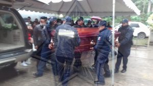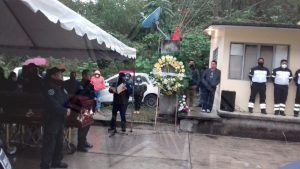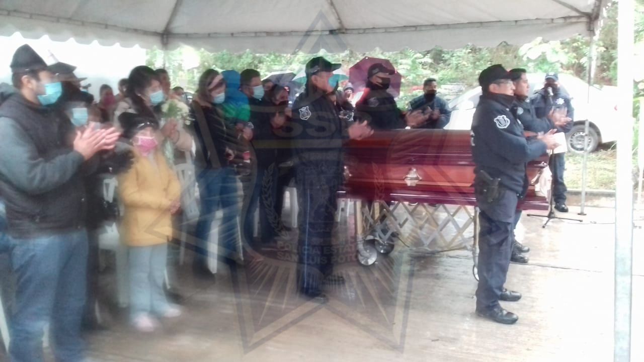 En esta ceremonia estuvo presente el jefe de Área Narciso Sánchez Cruz quien dio una breve semblanza del joven elemento que se desempeñaba en el área de cabina, al finalizar el homenaje de cuerpo presente, se trasladaron los familiares y compañeros de la Policía Estatal adscritos a la zona Huasteca, al panteón para darle sepultura.