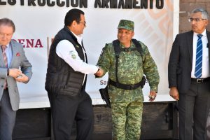 En un acto encabezado por el General Mario Arturo Fuentes Guevara, comandante de la 12 zona militar, se llevó a cabo la inhabilitación de los artefactos largos y cortos incautados desde el año pasado en diversas acciones en las que participan las distintas corporaciones de manera coordinada para reforzar la seguridad y la tranquilidad en San Luis Potosí, tal como lo ha trazado el Gobierno del cambio.