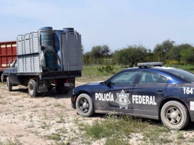 La Policía Federal dio a conocer además que en otro operativo se logró el aseguramiento de 3 mil 600 litros de gasolina que se ubicaban en dos vehículos abandonados que contenían 18 tambos con hidrocarburos y 23 vacíos, en la Carretera entronque del Huizache-Ciudad del Maíz.