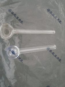 Como resultado de la revisión se le aseguraron tres bolsas conteniendo una hierba verde y seca con propiedades de la marihuana, y una bolsa con la droga sintética cristal, así como dos pipas de vidrio. Por tal motivo fue detenido Simeón S., de 19 años de edad.