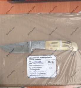 Por tales hechos se le aplicó una inspección de seguridad, aseguranfoles un cuchillo y una bolsa de nylon transparente con una hierba