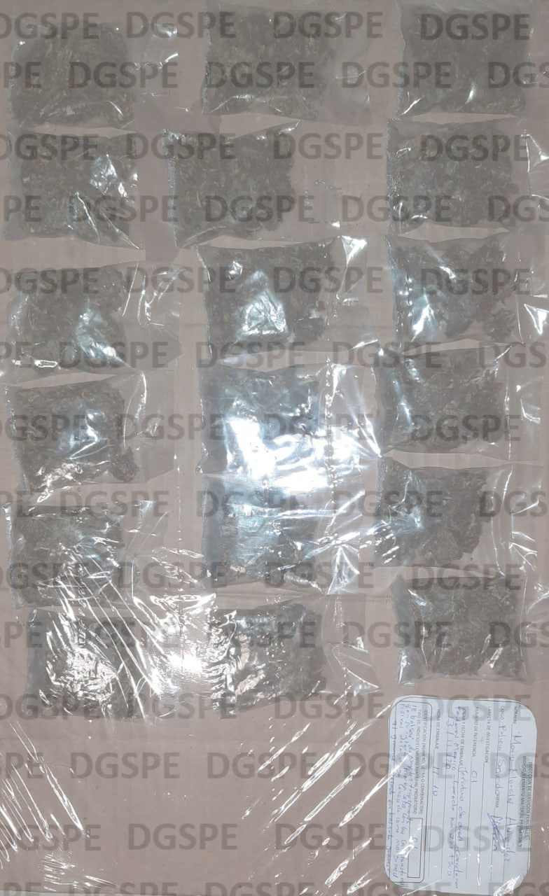 El primer hecho fue por la mañana, cuándo los elementos policiales en coordinación con la Guardia Nacional transitaban por el sector de la Cruz, recibiendo el reporte sobre una mujer que presuntamente vendía droga al exterior de un negocio, por lo que los elementos de seguridad iniciaron la búsqueda y localización de la presunta, teniendo contacto visual con una femenina que coincidía con las características proporcionadas en el reporte, al marcarle el alto y realzarle una inspección de seguridad, se le aseguraron 21 dosis de la droga sintética cristal, 18 bolsitas con marihuana y 600 pesos en efectivo que transportaba en una bolsa de mano. Por tales hechos se procedió a la detención de Jesusa M., de 43 años de edad.