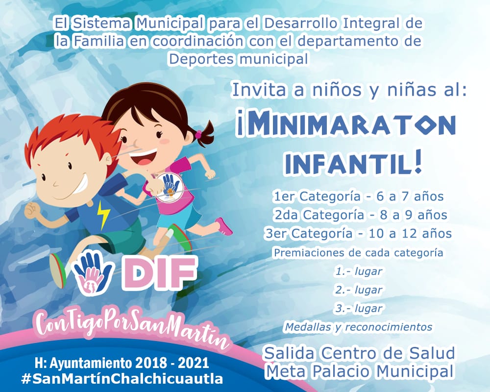 Invitan a niñas y niños a participar en el Mini maratón Infantil que se llevará a cabo este próximo 30 de abril, en punto de las 4:00 horas de la tarde.