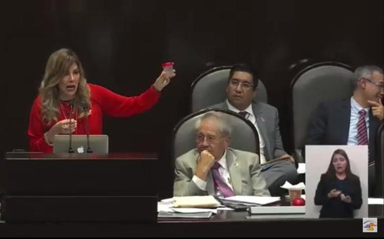 “Nos vienen hablar de ahorro, ahorros y planes. Yo creo que se debe de pasar de las buenas intenciones a las acciones. Para el Presidente y para usted todo está bien”, le increpó Garfias Cedillo acompañada de otros integrantes de su grupo parlamentario, quienes llevaban portadas de diarios que denunciaban deficiencias en salud.