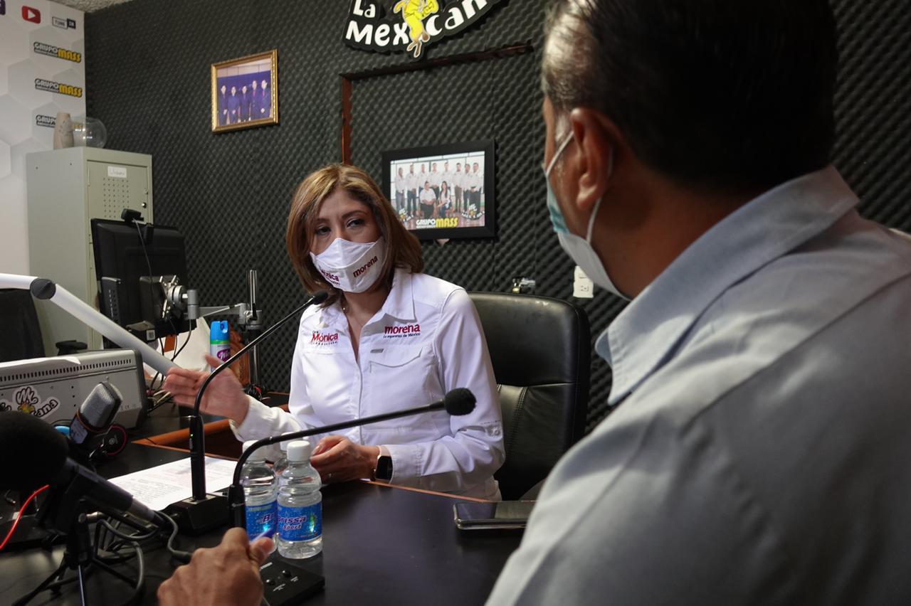 En entrevistas con medios de comunicación, la abanderada del Movimiento de Regeneración Nacional aseguró que con apoyos directos a amas de casa, empresarios y productores rurales, la transformación verdadera llegará a los 12 municipios de esta región del estado para acabar con décadas de rezago y olvido
